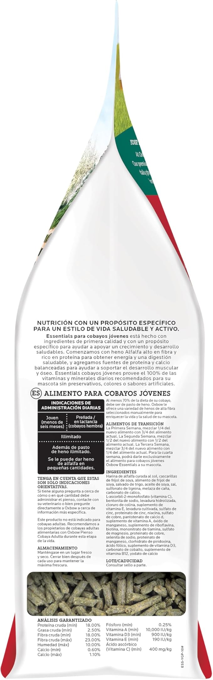 Oxbow Essentials Guinea Pig Food, Young, Made Alfalfa Hay for Guinea Pig, Pet Food Pellets with Vitamin C, Small Animal Pet Products, Made in USA, High Fiber, 10 lb. Bag