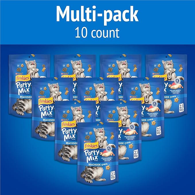 Purina Friskies Cat Treats, Party Mix Beachside Crunch - (Pack of 10) 2.1 oz. Pouches