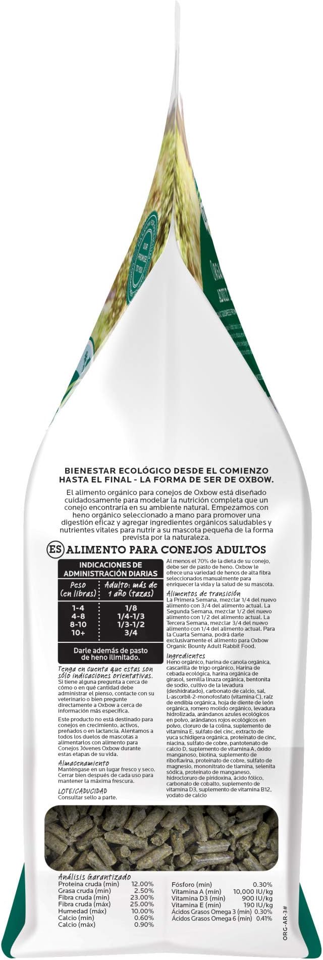 - ADULT RABBIT FOOD: Unleash the natural joy of your rabbit with Oxbow Organic Bounty Adult Rabbit Food; Indulge them with delicious pellets, each made with 100% hand-selected, certified organic meadow hay for rabbits; A feast they will truly enjoy
