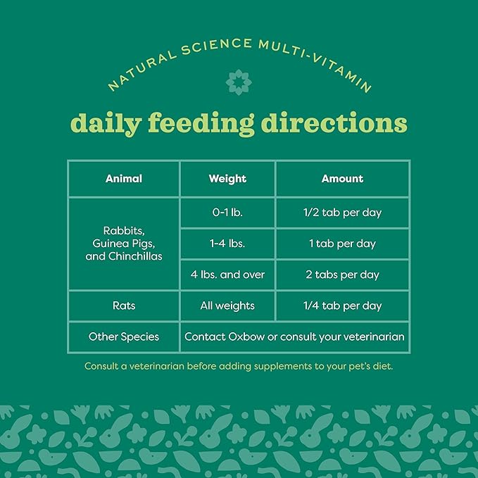 Oxbow Animal Health Natural Science Multi-Vitamin, High Fiber Supplement for Rabbit & Guinea Pig, Made with Timothy Hay, Multi-Pet Households, Omega 3 & 6 Fatty Acids, Made in USA, 4.2 oz Bag