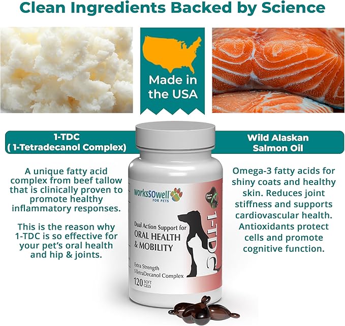 1TDC WorksSoWell Dual Action Joint Supplement for Dogs & Cats - Hip and Joint Supplement for Large Breed & Small Breed - Also Great for Oral Health - Muscle & Stamina Recovery & Arthritis - 120ct