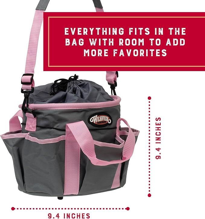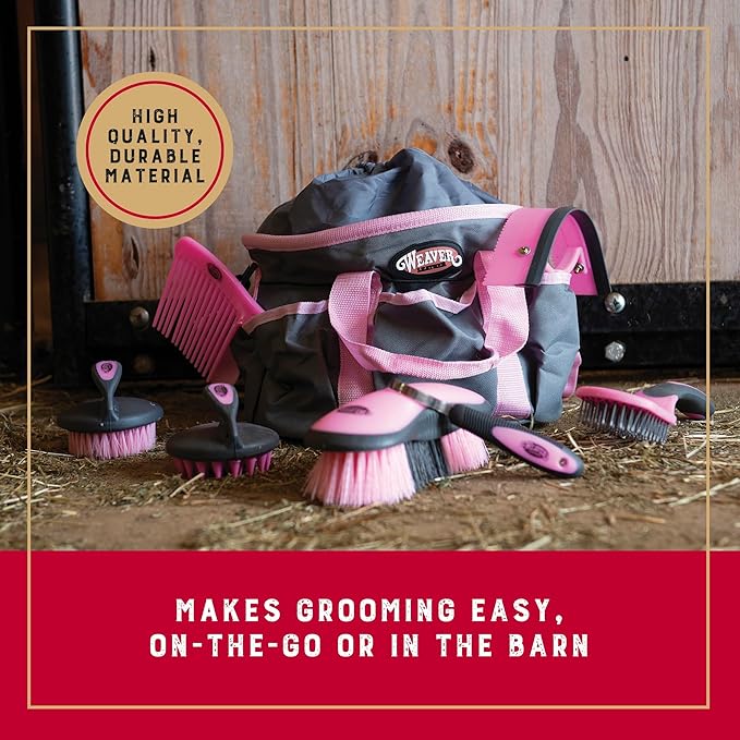 Weaver Leather Horse Grooming Kit, 7-piece Horse Brush Set with Organizer Tote Bag, Equine Care, Horse Tack Room Equipment, Grooming Horse Supplies, Gray/Pink