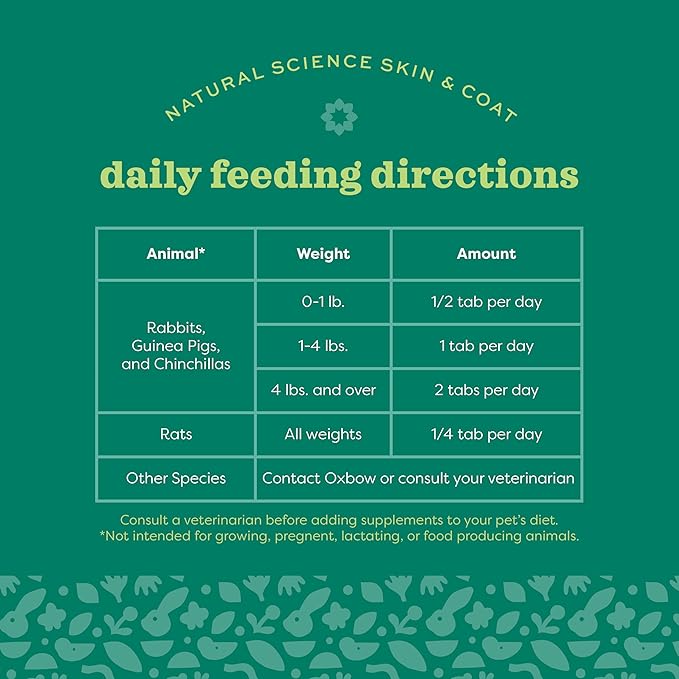 Oxbow Animal Health Natural Science Skin & Coat Support, Supplement for Rabbit & Guinea Pig, Made with Oxbow Timothy Hay, Includes Palm Oil & Omega 3 & 6 Fatty Acids, Made in USA, 4.2 oz Bag