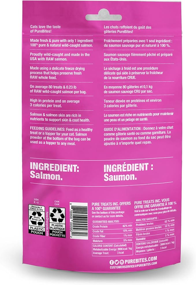 PureBites Salmon Freeze Dried Cat Treats, 0.92Oz | 26G - Value Size