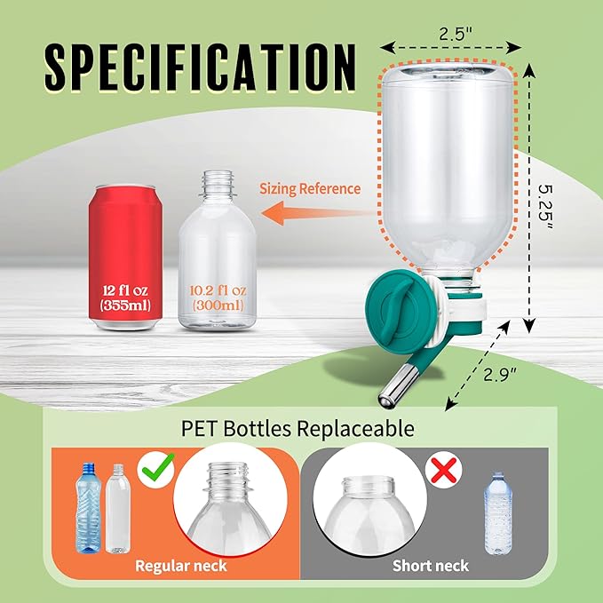 - 10.2 oz (330ml) capacity: Provides an adequate water supply for small pets