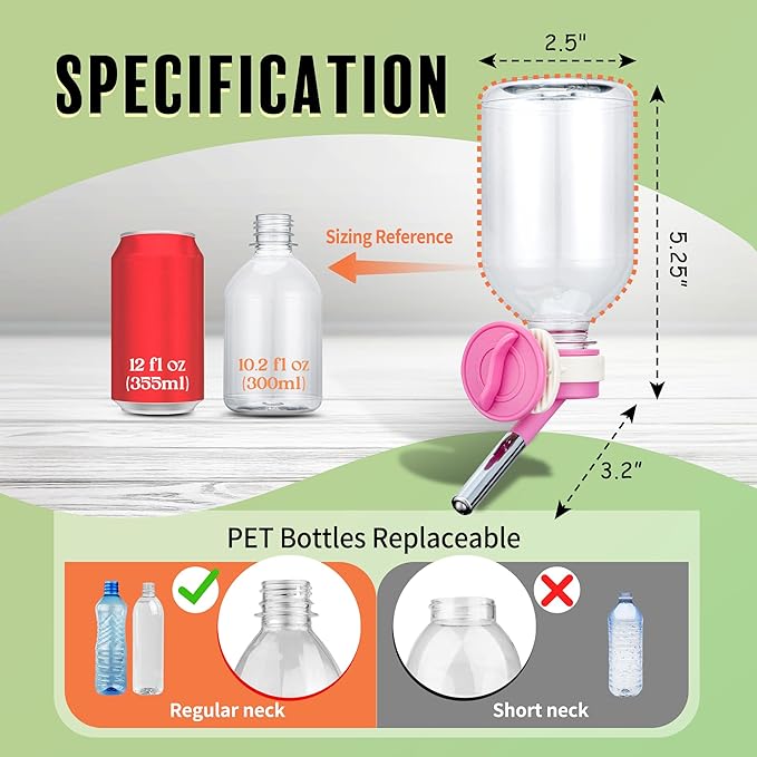- ๐พ Mini-Sized Nozzle (10mm) is recommended for Guinea Pig, Ferret, Hamster, Bunny. / Made of BPA Free Material/ 10.2 oz Capacity.