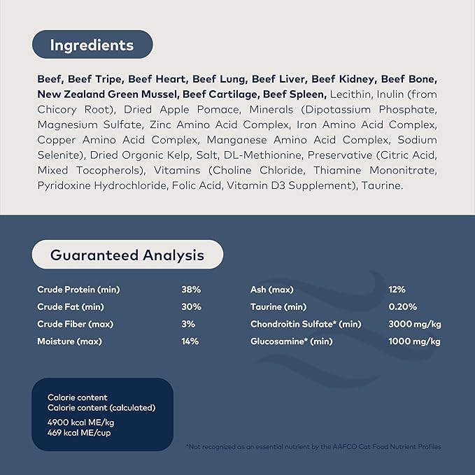 - HIGH PROTEIN, NUTRIENT DENSE: Featuring 96% free-range Beef, Organs, Bone, and New Zealand Green Mussels, this grain-free cat food delivers nutrition with a mouth-watering taste for all cats. Gentle air dried processing retains the goodness of the raw ingredients. This food supports indoor cat food needs and is perfect for all life stages, from kitten food to senior cats.
