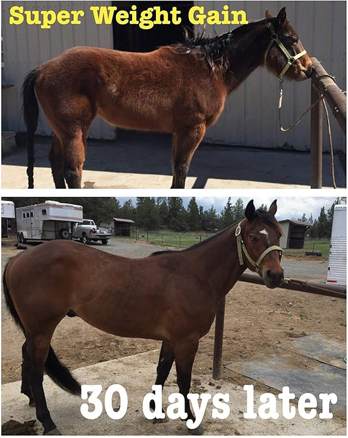 - Transform Your Horse's Condition Effortlessly: The Horse Guard Super Weight Gain supplement delivers optimal results with its innovative formula, providing healthy weight gain for horses, making your equine friend visibly healthier and more vibrant. Boosting both weight and vitality, this comprehensive supplement appeals to horses' natural dietary inclinations, ensuring they thrive without drastic dietary changes.