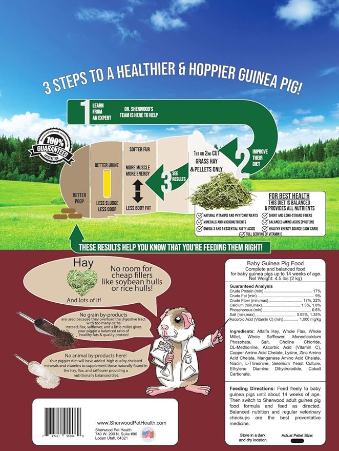 - All-natural ingredients: Contains no artificial binders, fillers, or additives, providing a clean, wholesome diet for your young guinea pig's development.