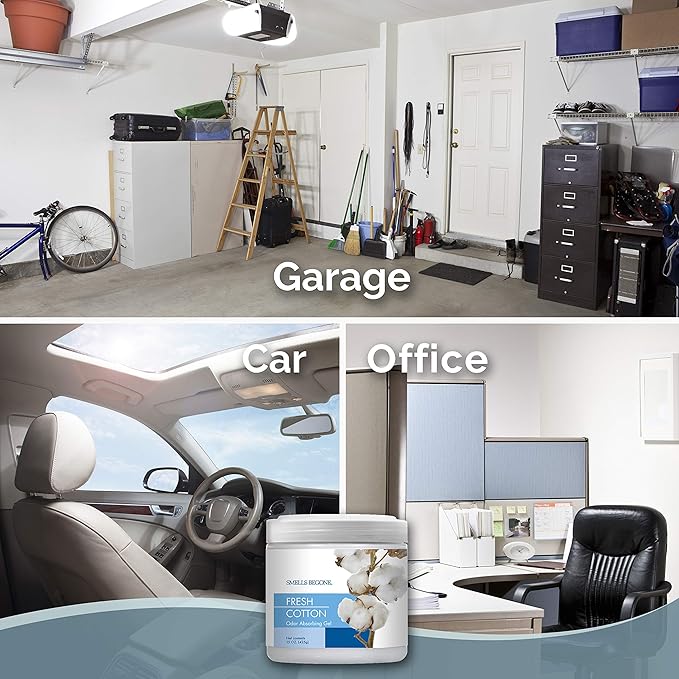SMELLS BEGONE Air Freshener Odor Absorber Gel - 15 oz, Pack of 2 - Absorbs and Eliminates Odor in Pet Areas, Bathrooms, Cars, & Boats - Made with Essential Oils - Fresh Cotton Scent