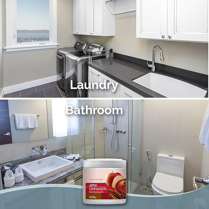 SMELLS BEGONE Air Freshener Odor Absorber Gel - 15 oz, Pack of 2 - Absorbs and Eliminates Odor in Pet Areas, Bathrooms, Cars, & Boats - Made with Essential Oils - Apple Cinnamon Scent