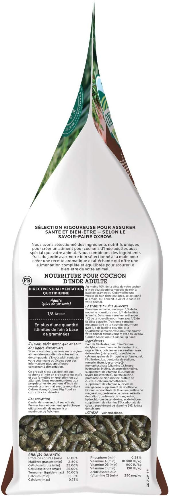 - FORMULATED WITH THE GUIDANCE OF LEADING VETERINARIANS AND NUTRITIONISTS. Garden Select Adult Guinea Pig food is formulated with the guidance of experts. For more than 30 years, Oxbow has partnered with leading exotics veterinarians and nutritionists to formulate foods that meet the specific species and age needs of small pets.