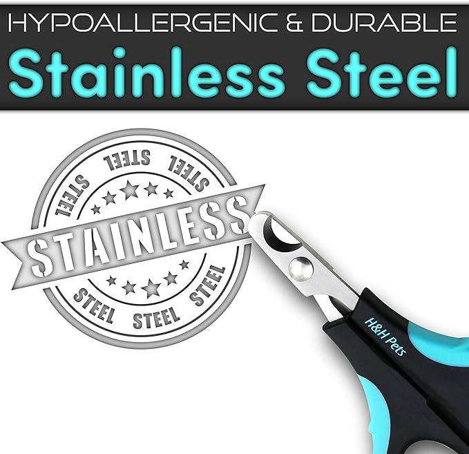 - HIGH QUALITY AND EASY TO USE DESIGN โ The cat nail clipper's stainless steel blade is hypoallergenic and durable. The handle is finished with a slip-proof coating that allows you to securely and comfortably grip them in order to prevent painful accidents. Detailed instruction is printed on the back of the package.