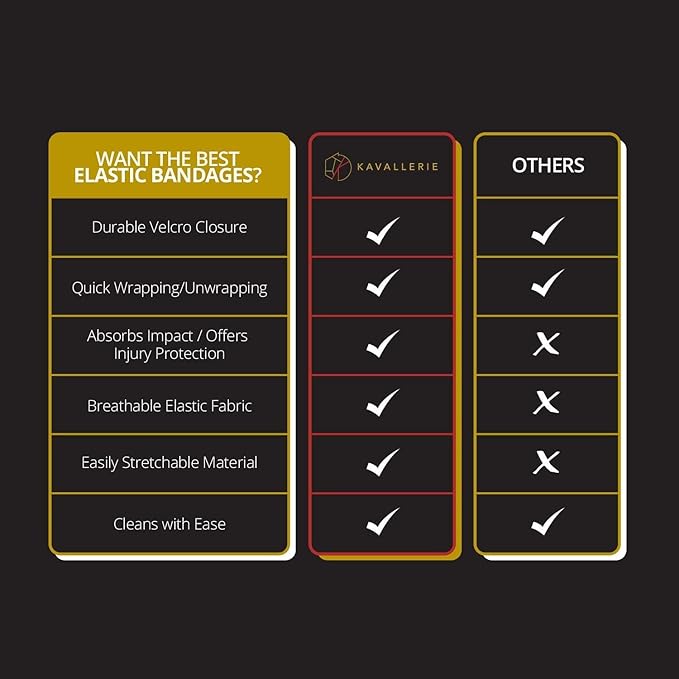 - IMPACT-ABSORBING & INJURY PROTECTION - Kavallerie Elastic Bandages is an ultimate leg support during high-level performances such as exercises and competitions. It protects the sensitive horse tendons and ligaments from cuts, abrasions, and minor swelling. With sufficient elasticity, it makes sure that the legs are protected during turnouts.