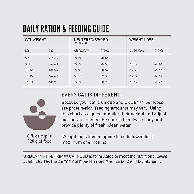- One (1) 4 lb bag of ORIJEN Fit and Trim Dry Cat Food With Fresh and Raw*** Ingredients