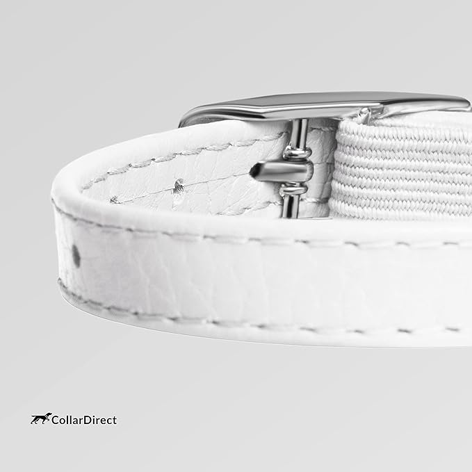 CollarDirect Leather Cat Collar, Kitten Collar with Removable Bell Black Blue Red Orange Lime Green (6-7 Inch, White)