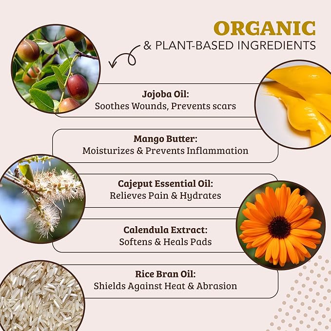 - POWERFUL, LICK-SAFE WAX-BASED BARRIER: Formulated with premium, all-natural ingredients like Carnauba Wax, Candelilla Wax, Organic Shea Butter, and Calendula Extract, our balm creates a long-lasting shield against snow, ice, and salt. Ideal for daily All Season use, it deeply moisturizes and conditions to prevent cracking, dryness, and irritation. Safe if licked by curious pets, this paw balm keeps paws resilient and protected through all All Season adventures.