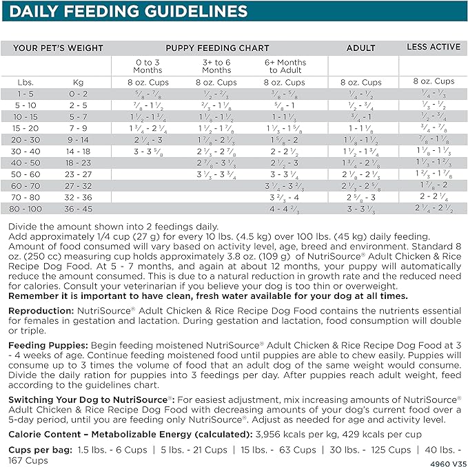 NutriSource Adult Dog Food, Made with Chicken and Rice, with Wholesome Grains, 30LB, Dry Dog Food