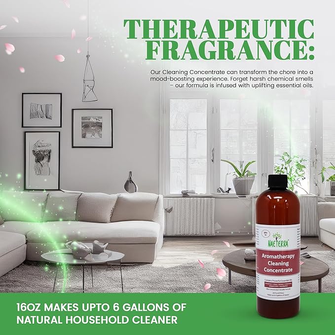 Naeterra Aromatherapy Cleaning Concentrate 16 oz Natural Multi-Surface Cleaner, Plant-Based and Biodegradable, Makes 6 Gallons, Cleaning Essential Oil Formula, Safe for Families and Pets