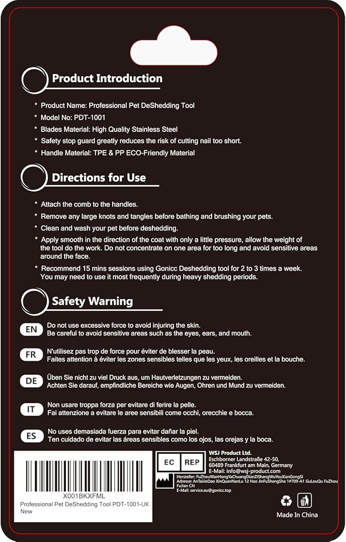 - EASY TO CLEAN AND STORE โ Just press the button to easily remove the deshedder head for cleaning. Convenient eyelet on the tail of the Gonicc Pet Grooming Brush, you can store, hang or even clip to your belt, easy for storage.