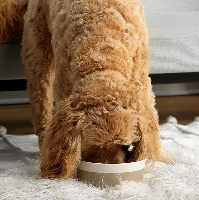 Waggo Dipper Ceramic Dog Bowl for Small and Large Breeds - Heavyweight and Durable Pet Food and Water Dish Crock, Dishwasher Safe, Modern (Black, Medium)