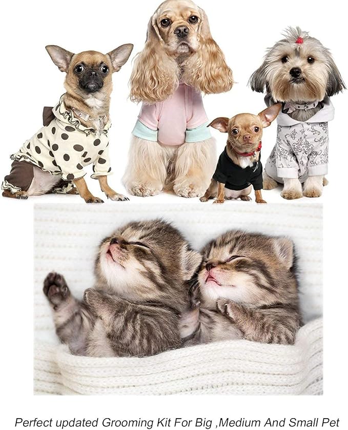 - SHARP BLADE AND EFFICIENT TRIM:Titanium alloy blade is combined with ceramic blade, which can keep your pets safely and cut the pets hair effectively at the same time. This pet hair clipper will not hurt the pet’s skin and stuck the pet’s hair., smooth and efficient cutting, Perfectly for large, medium and small dogs or cats and other family puppy grooming.