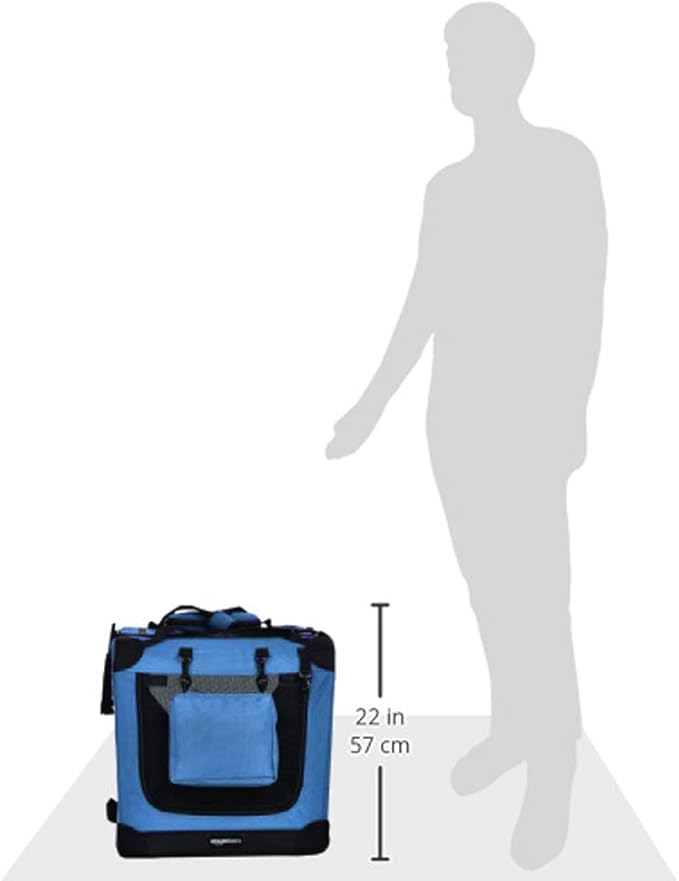 Amazon Basics Folding Portable Soft Pet Dog Crate Carrier Kennel, 26 x 18 x 18 inches, Blue