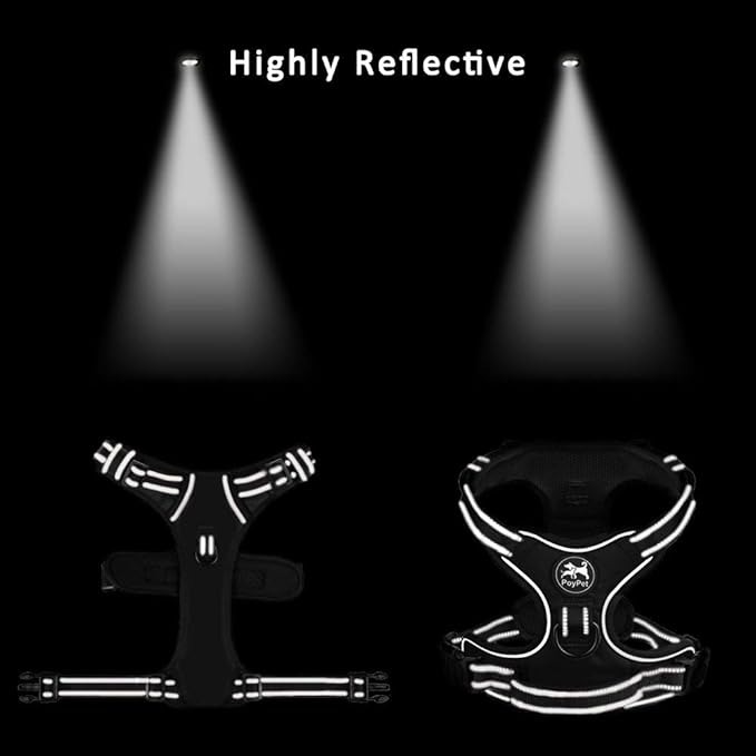 PoyPet No Pull Dog Harness, Reflective Comfortable Vest Harness with Front & Back 2 Leash Attachments and Easy Control Handle Adjustable Soft Padded Pet Vest for Small to Large Dogs (Pink,L)