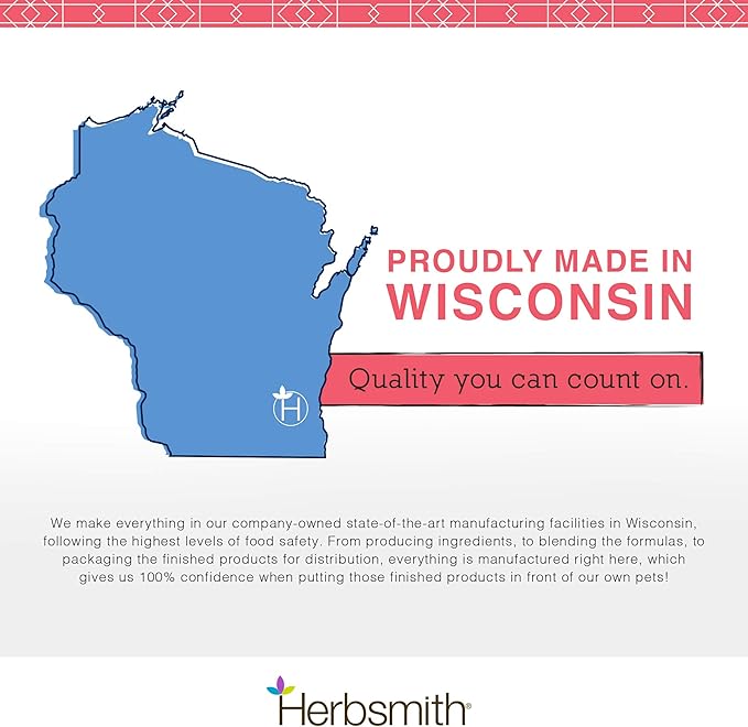 - MADE IN THE USA - This supplement was developed by holistic veterinarian, Dr. Chris Bessent, who owns and operates Herbsmith’s two facilities in Wisconsin. It’s quality you can trust from a veterinarian with over 30 years of experience.