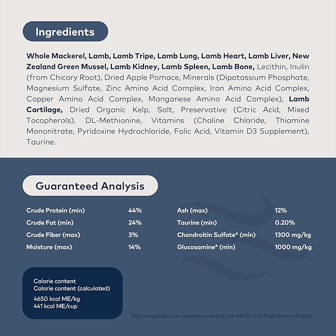 - HIGH PROTEIN, NUTRIENT DENSE: Featuring 96% wild-caught Mackerel, free-range Lamb, Organs, Bone, and New Zealand Green Mussels, this grain-free cat food delivers nutrition with a mouth-watering taste for all cats. Gentle air dried processing retains the goodness of the raw ingredients. This food supports indoor cat food needs and is perfect for all life stages, from kitten food to senior cats.
