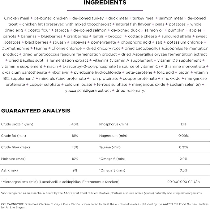 Go! Solutions Carnivore, Grain-Free, Protein Rich Dry Cat Food, Chicken, Turkey and Duck Recipe, 16 lb Bag
