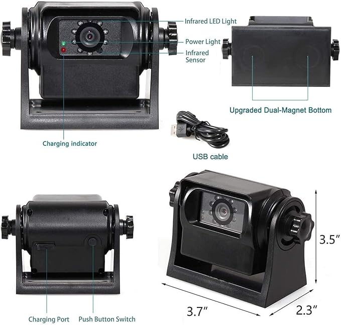 - Professional-Grade Hitch Camera for Safer Towing: IP68 dust-proof and waterproof, fully submersible at 1.5m for 30 minutes, withstands boat launches or grain dust on farms; Rechargeable via Type-C (8hrs runtime) or permanent 12V DC hardwiring (NEVER use DC port for charging)
