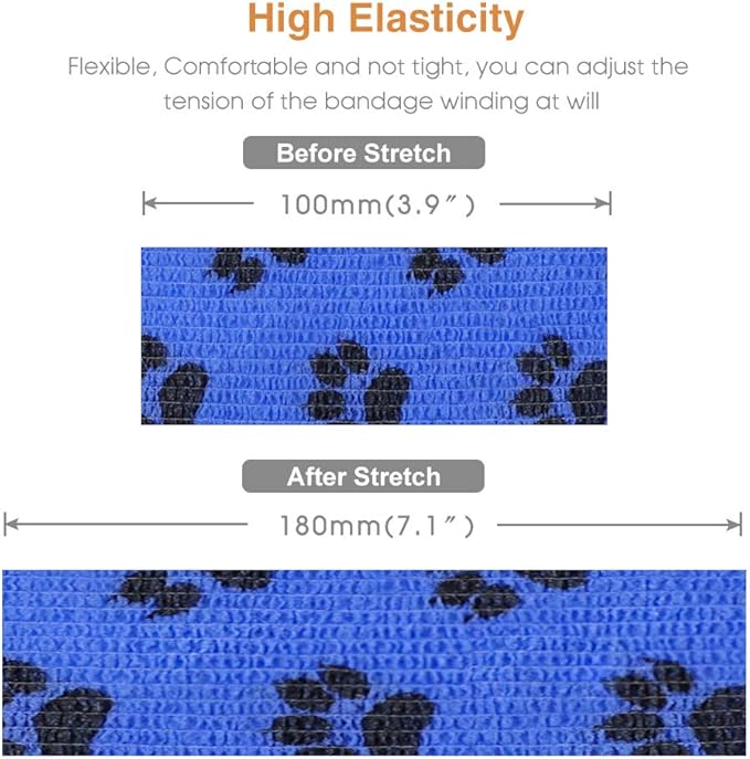 AUPCON Vet Wrap Cohesive Bandages Bulk Self Adhesive Bandage Wrap Self Adherent Wrap Non-Woven for Dogs Pet Animals & Ankle Sprains & Swelling (3 Inch Blue Claw)