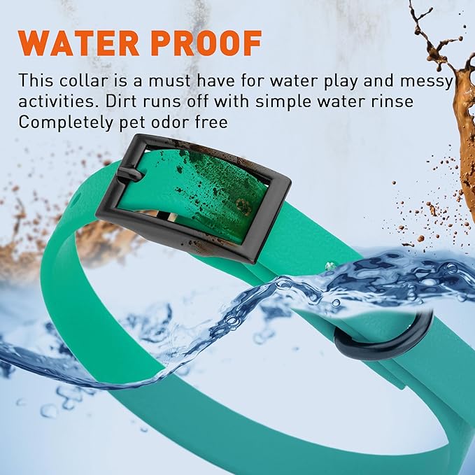 • Free Your Dog to romp in puddles and retrieve from lakes with the Dogline Biothane Waterproof Dog Collar. This water-repellent collar stays dry and odor-free, without shrinking or losing flexibility.