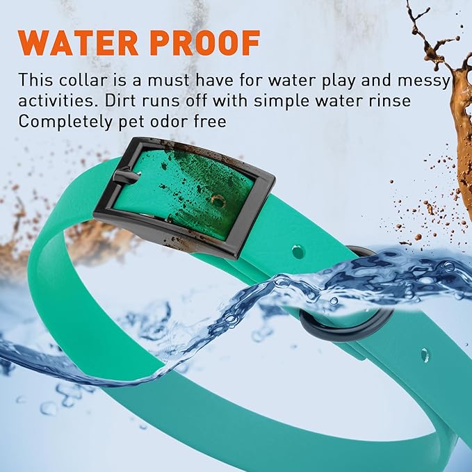 Dogline Biothane Waterproof Dog Collar Strong Coated Nylon Webbing with Black Hardware Odor- Proof for Easy Care Easy to Clean High Performance Fits Small Medium or Large Dogs, Teal