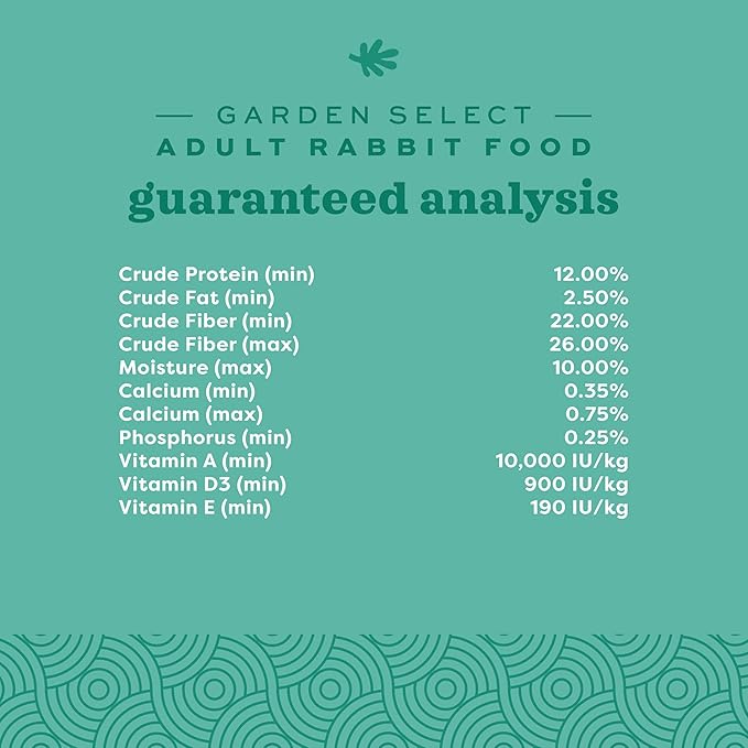 - RABBIT FOOD: Immerse your pet in the natural medley of our Garden Select Rabbit Food; These pellets contain a garden-inspired, hand-selected recipe of timothy hay, orchard grass, and oat hay, resembling your pet bunnies' natural habitats