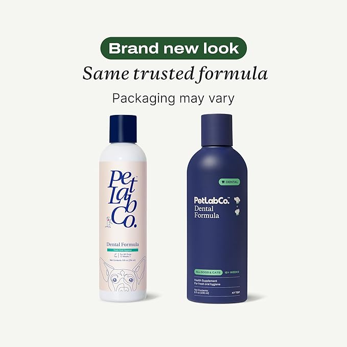 PetLab Co. Dog Dental Formula - Keep Dog Breath Fresh and Teeth Clean - Supports Gum Health - Water Additive Dental Care Targets Tartar - Packaging May Vary