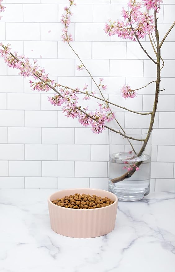 Waggo Ripple Ceramic Dog Bowl for Medium and Large Breeds - Modern with Matte Finish, Heavyweight Durable Pet Food and Water Dish Crock, Dishwasher Safe(Medium, Rose)