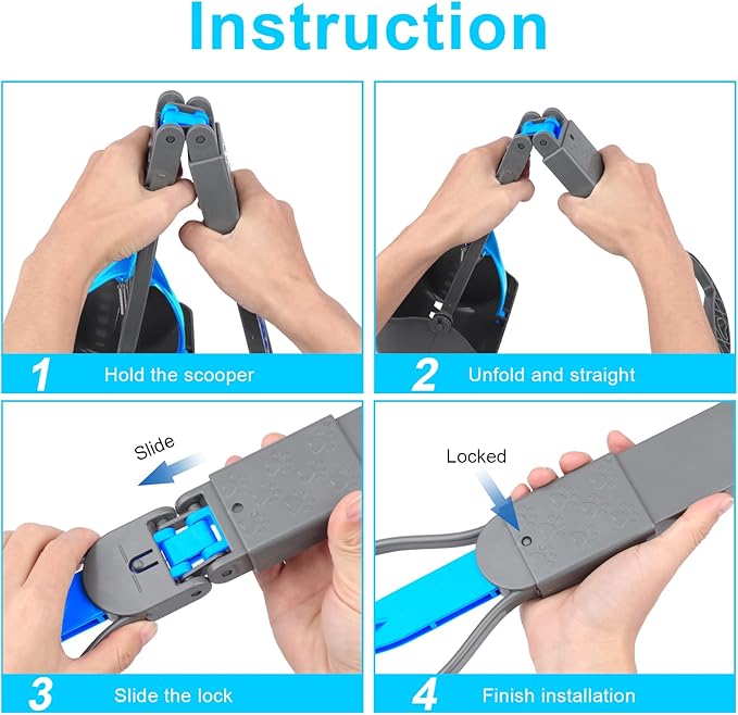 - 【Easy to Use & One Step】Only need to take ONE step to use our pooper scooper. Just sliding down the lock for quick and easy to use. Unlock and fold in half for very convenient to carry and storage. You won’t worry about complicated assembly like other tools. Folding and portable design ensures that you are very convenient to carry and use.