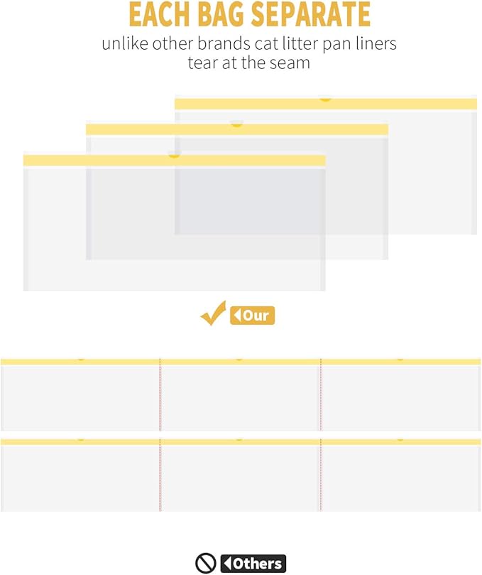 - EASY TO USE: Each bag is separate, unlike other brands cat litter pan liners which tear at the seam when you open it, no more messes. Leak proof and extra durable, contains no perfumes or deodorants