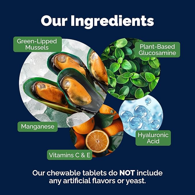- HEALTHY INGREDIENTS: YuMOVE dog hip and joint supplement for senior dogs, contain sustainably sourced ActivEase Green Lipped Mussel, Hyaluronic Acid, & plant-based Glucosamine for dogs. Our triple-action formula helps to ease stiff joints, ensures proper lubrication of dogs' joints, & acts as a fundamental building block for cartilage.