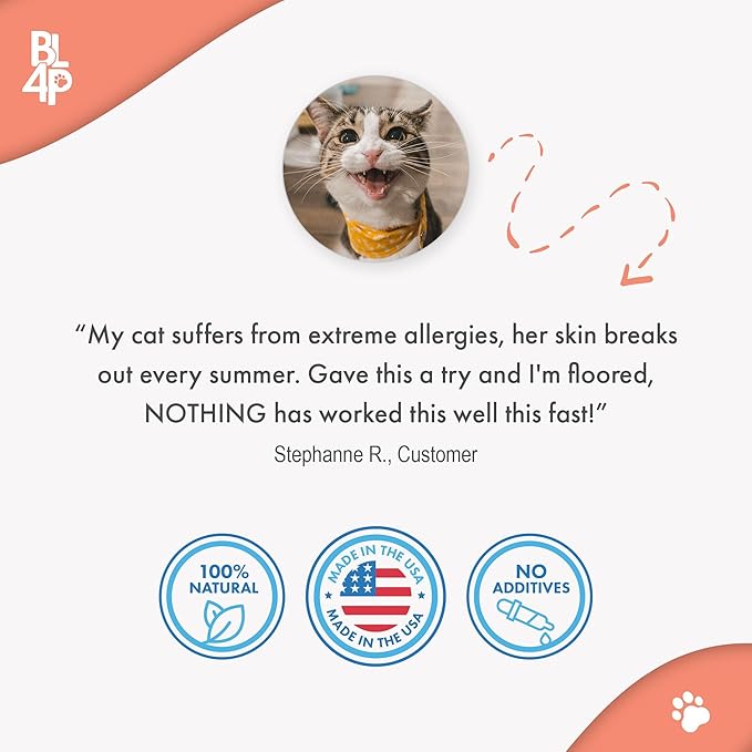 - Comprehensive Cat Skin Allergy Relief: Unlike smelly chews or oily skin care lotions and oils that only treat external symptoms, our holistic healthy skin and coat cat dandruff treatment gets to the root cause of skin issues, providing long-term relief from skin allergies and dermatitis.