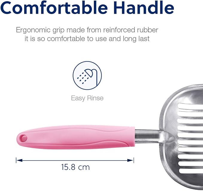 - [Features]: WePet made this scooper durable with heavy duty quality. After investigation with thousands thoughtful users, we finally make an improvement of removing the serrated edge as mentioned on reviews. The body is waterproof and very easy to clean, rust-resistant and corrosion resistant. It’s highly recommended by cat lovers for everyday use.