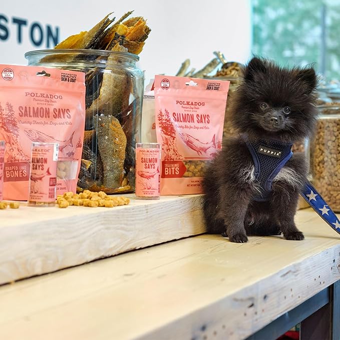 Polkadog Salmon Says Training Bits - Omega-3 Rich, Low Fat Healthy Dog Treat - Digestible, Vitamin & Mineral Packed Dog Snacks - Crunchy 3-Ingredient Treat, Ideal for Dogs with Allergies - 7oz
