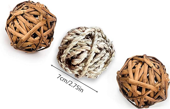 - Rabbit Toys Package Include : You will receive 1 pcs rabbit seagrass mat , 3 pcs rattan balls , 4 pcs carrots. Seagrass mat size :11.8 in ร 11.8 in, rattan balls size : 2.72 in, carrot size : 3.9 in long, which will be sufficient for your adorable rabbits or small rodent pets to use and play