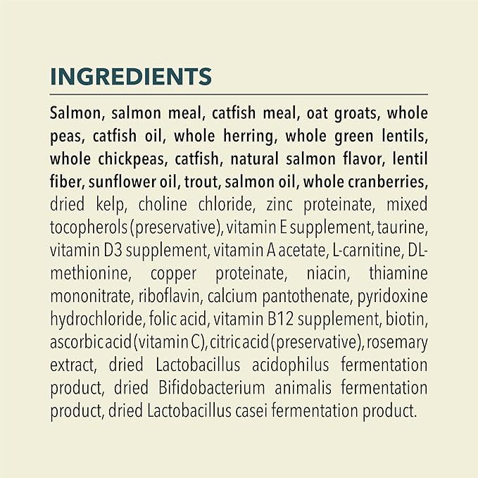 - One (1) 4 lb bag of ACANA Bountiful Catch Salmon and Whole Herring Dry Cat Food for Adult Cats.