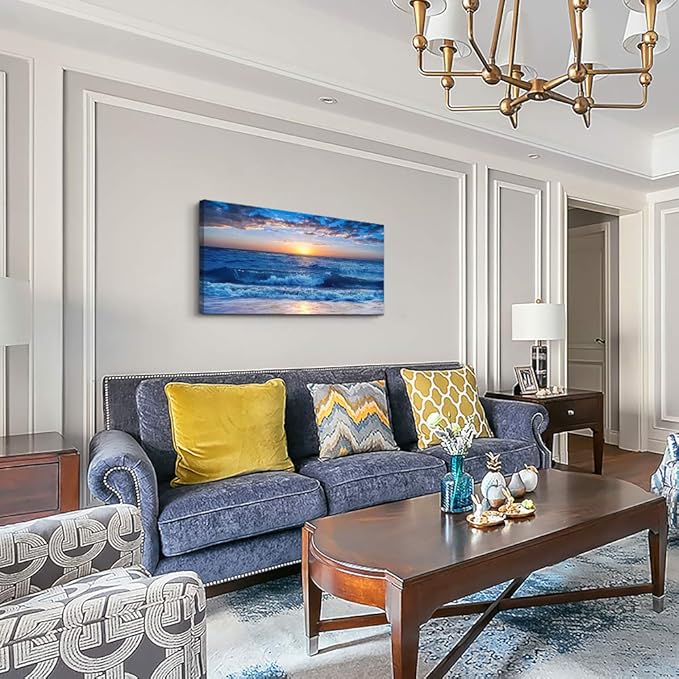 Canvas wall art for living room Blue Ocean Sea sun landscape painting bathroom Wall Decor Ready to Hang for Home Decorations office family bedroom kitchen Works canvas Prints pictures 30" x 60"inch