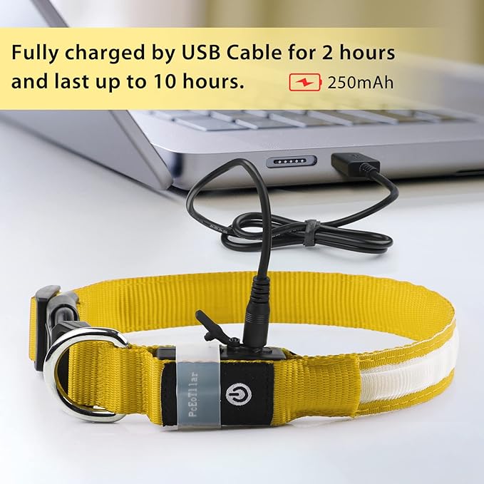 - ➤ Rechargeable Led Dog Collar - PcEoTllar dog collar is waterproof. No worries about the collar when your dog is swimming or playing under the water! Please close the Soft Charging Cover after charging and please stay away from sea-water. Rechargeable with any other daily USB device is more convenient, you will not paying for batteries anymore! Full power can last 10 hours.