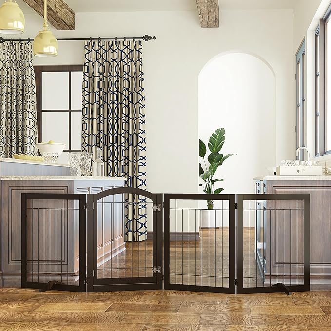 - DURABLE & ATTRACTIVE: Those pet panels Constructed from a durable solid wood frame and strong mental wire interior , It's Perfect for Especially Large Dogs or a Puppy Who like to Chew on Everything, yet the pet gate fit beautifully in any home decor.