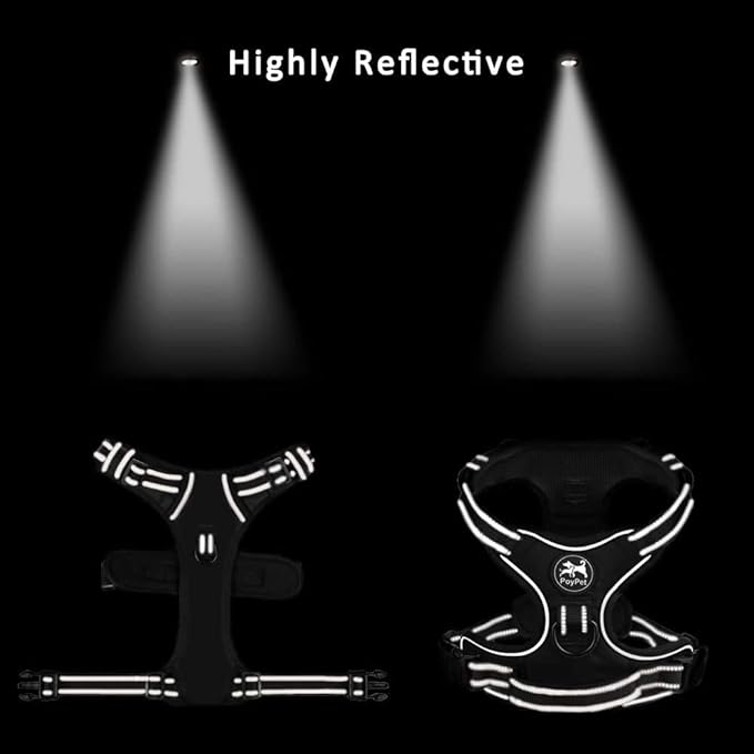 PoyPet No Pull Dog Harness, Reflective Comfortable Vest Harness with Front & Back 2 Leash Attachments and Easy Control Handle Adjustable Soft Padded Pet Vest for Small to Large Dogs (Pink,XS)